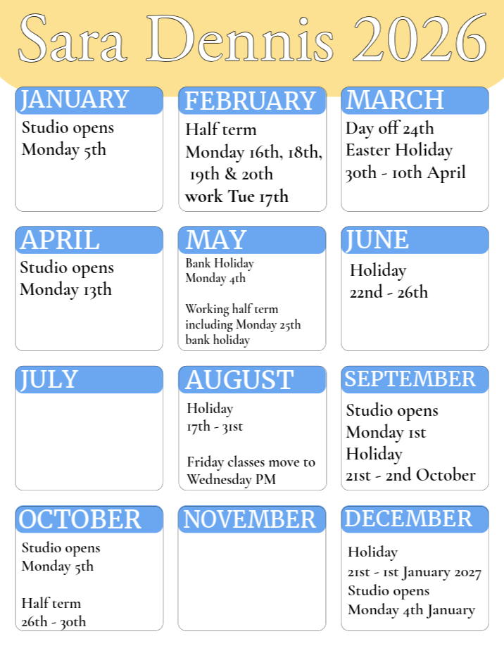Over the years Sara has filmed a variety of classes to support clients outside of the studio. Each video can be purchased at a cost of £3. You will receive a private Youtube link to watch whenever you like.